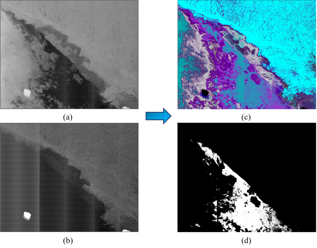 Using intensity values coupled with incidence angle and Noise-Equivalent Sigma Zero (NESZ) information, the image segmentation method is able to detect low backscatter targets as one segment across sub-swaths. We use the Barents Sea as a test site due to the abundant presence of low backscatter targets with different origins, and of long-term operational monitoring services that help cross-validate our observations. Utilizing a large set of scenes acquired in the Barents Sea during the freezing season (November – April), we demonstrate the potential of performing large-scale operational monitoring of local phenomena with low backscatter signatures.